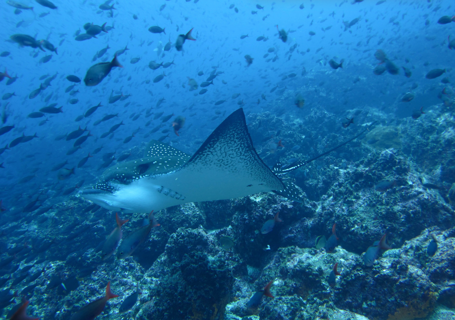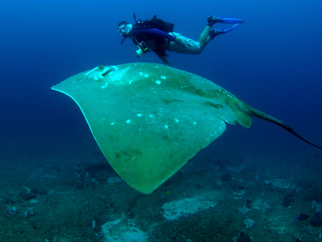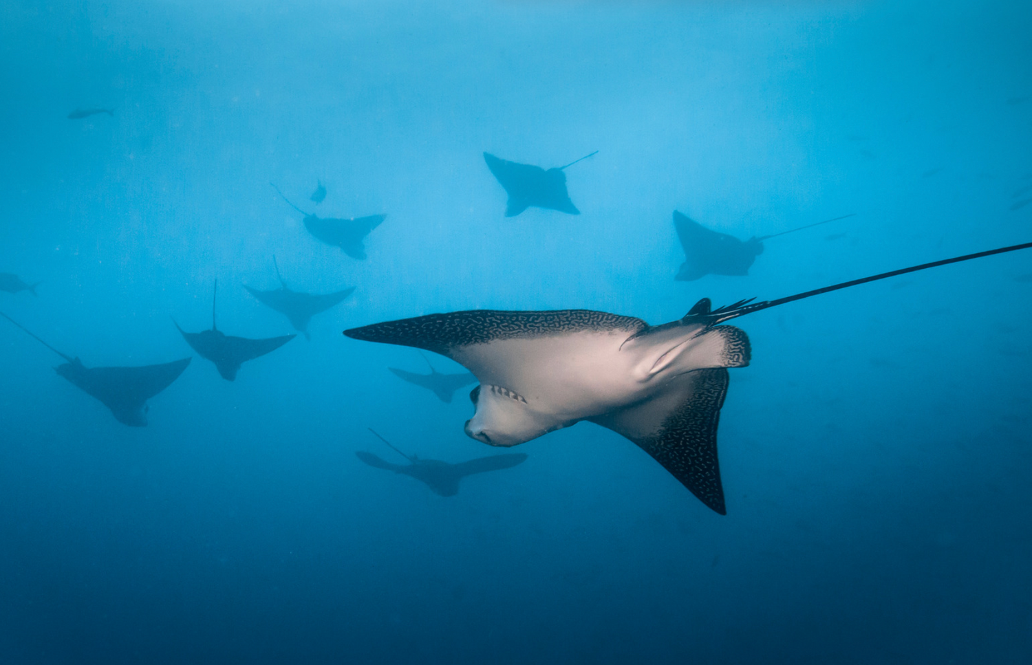 You might get to the seafloor seeing leopard sharks in a mating dance, oceanic manta rays cruise by and schooling eagle rays to welcome you down to some of the planet's most wild places.