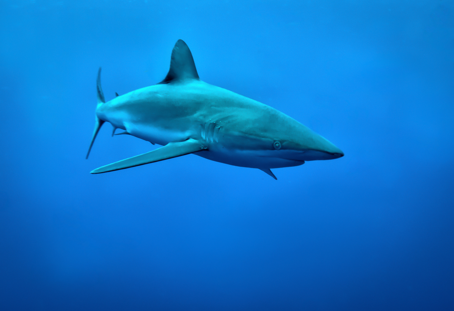 The Galápagos shark is a sleek, inquisitive apex predator commonly seen around Wolf and Darwin Islands.