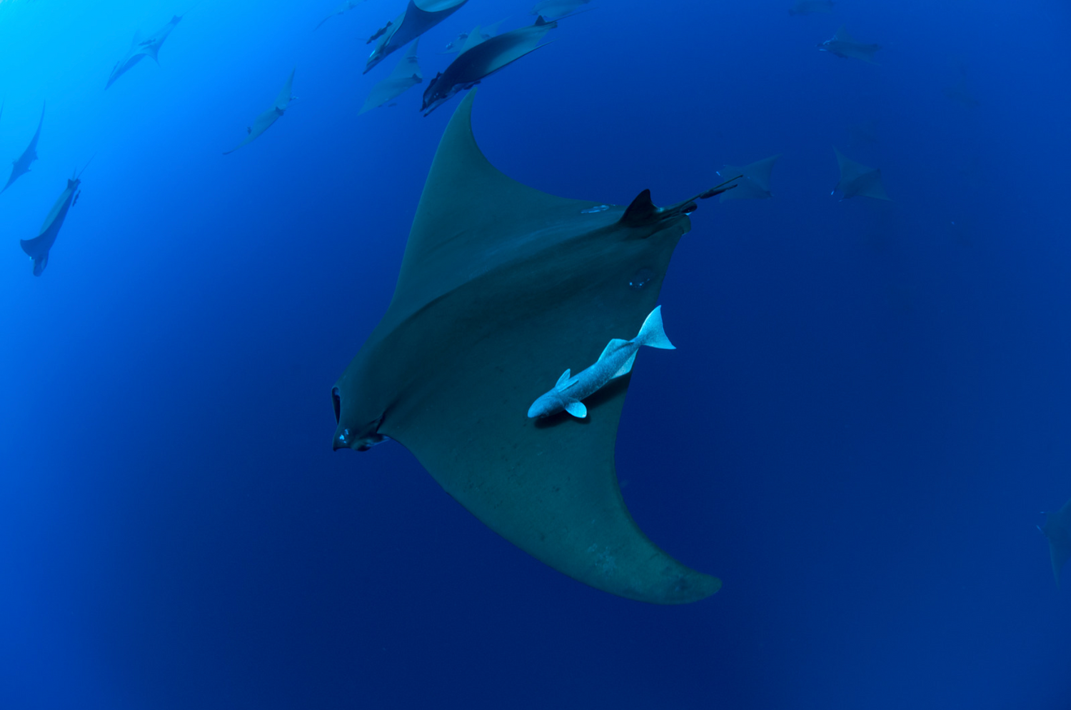 Schooling Mobula rays