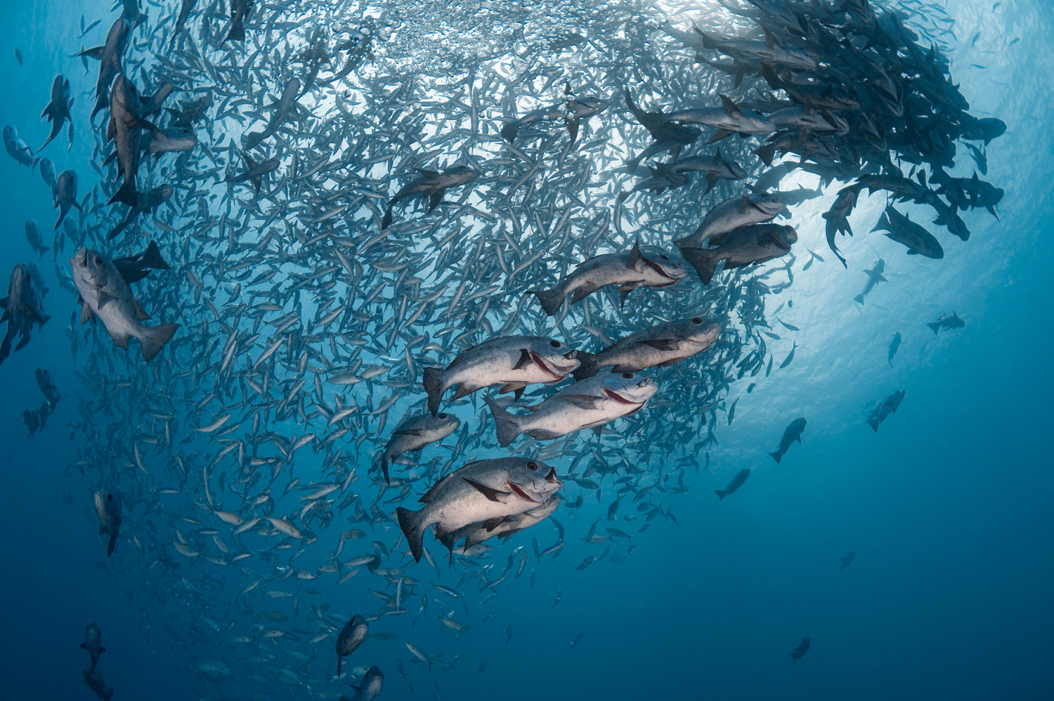 The site is also inhabited by jacks, huge tunas, and barracudas.